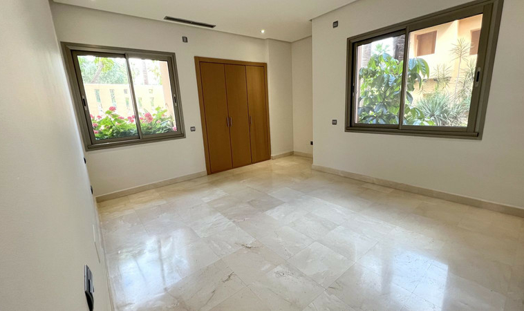 Se trata de una planta baja en esquina, orientada al sur, elevada sobre el nivel del suelo aprox. 2,5 metros lo que aporta mucha luz natural y una notable sensación de privacidad dentro de esta exclusiva urbanización.