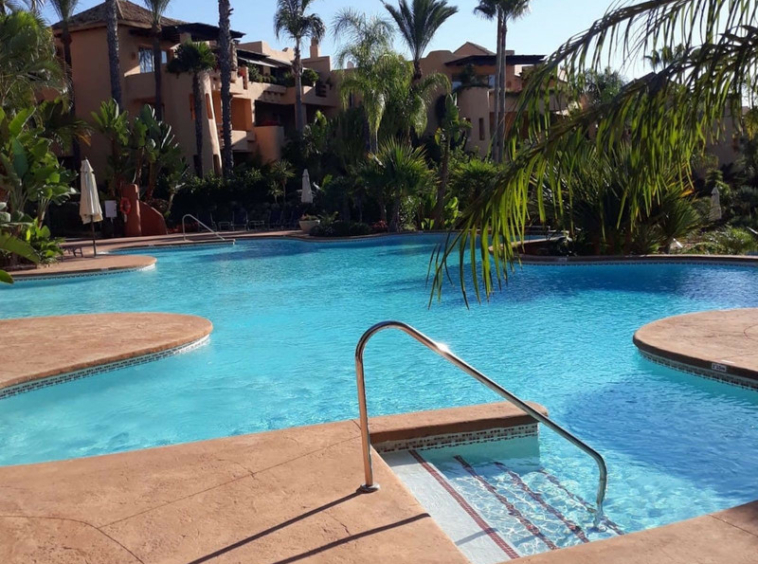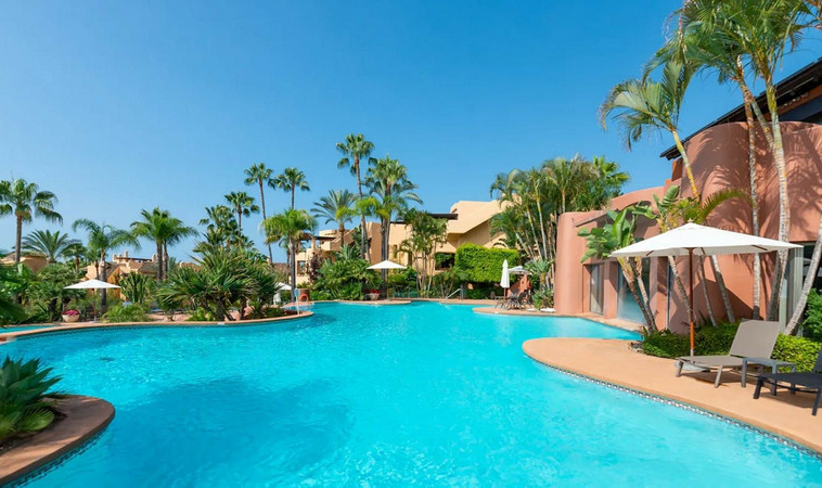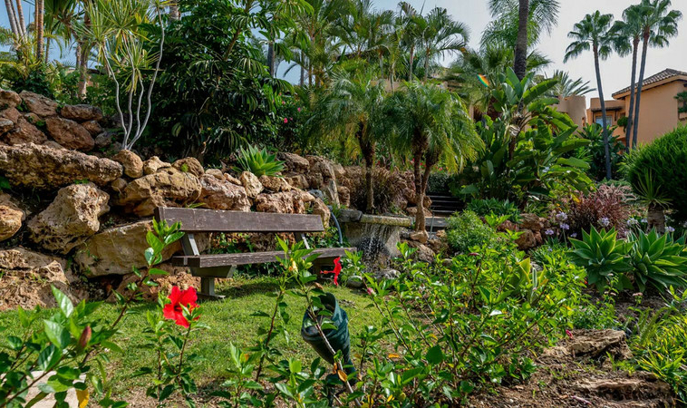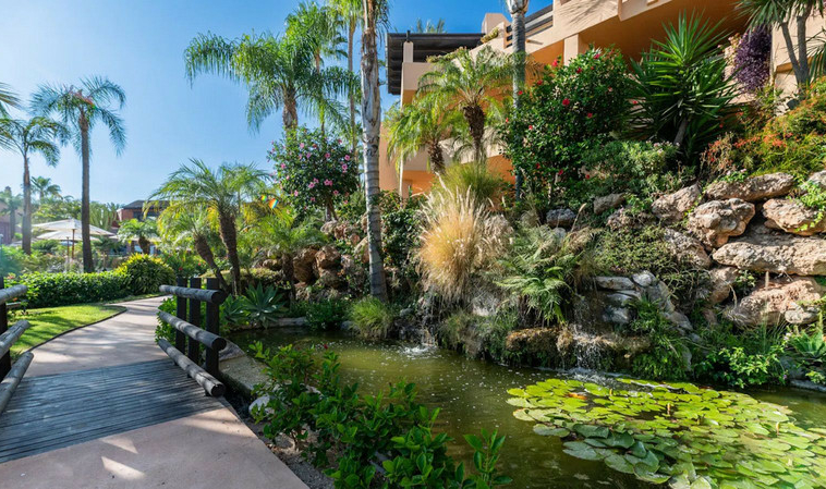 Este complejo residencial con vigilancia 24 horas, rodeado de exuberantes jardines tropicales, piscinas y cascadas, cuenta con una zona SPA, jacuzzi, piscina cubierta y gimnasio, y se encuentra a aproximadamente 2 km del centro de Marbella y de sus playas. Diseñado por el célebre arquitecto Melvin Villarroel, se construyó con materiales de primera calidad y características únicas que le otorgan un carácter distintivo.