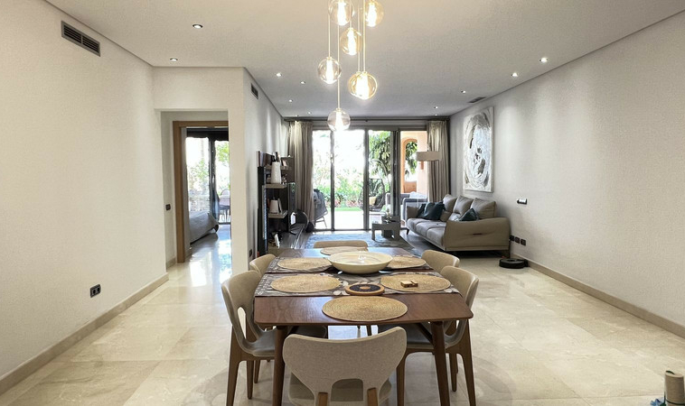 El interior destaca por su amplia sala de estar y comedor que se conecta con la terraza. La cocina independiente ofrece comodidad y privacidad, con una zona de lavandería separada. El dormitorio principal tiene acceso directo a la terraza y un baño en suite. Los acabados de alta gama aportan elegancia y sofisticación en todo el apartamento.