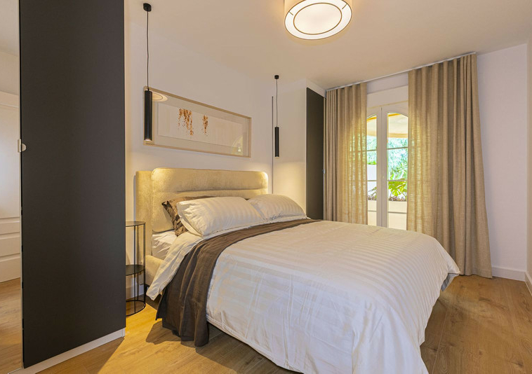 Tres amplios dormitorios se abren directamente a terrazas privadas, donde le esperan el sol y la serenidad. Dos baños de diseño con elegantes duchas a ras de suelo elevan su rutina diaria a una experiencia similar a la de un spa.