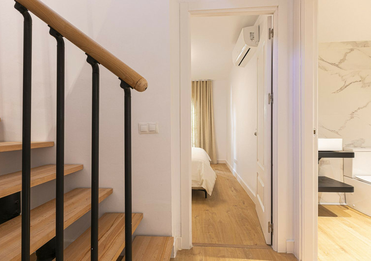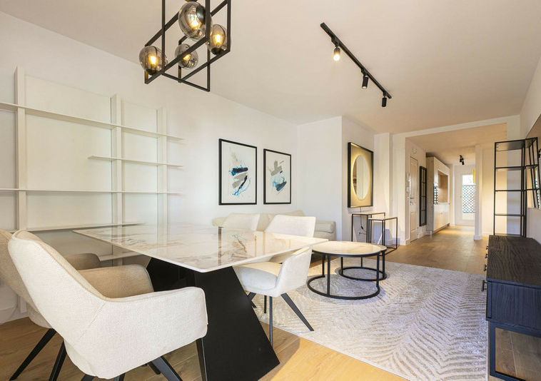 Una propiedad dúplex de tres dormitorios totalmente transformada que ocupa una esquina.