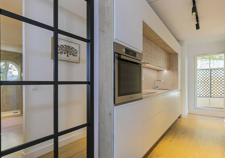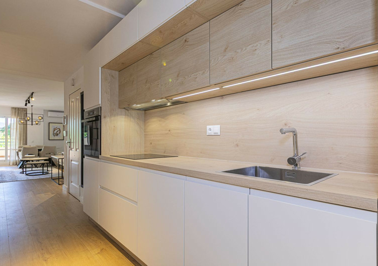 El corazón de la casa es una cocina contemporánea totalmente equipada, que cuenta con una impresionante gama de armarios y acabados de alta calidad, perfecta tanto para creaciones gourmet como para cenas informales.