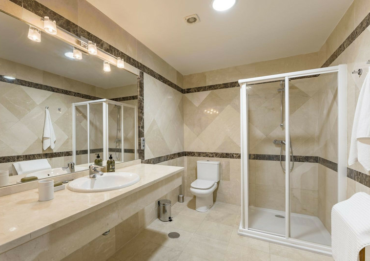 ambos dormitorios encimeras de mármol en los lavabos. Las duchas separadas. Las
