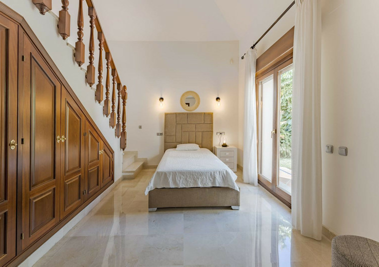 madera maciza lleva a la primera planta, donde encontrará el dormitorio principal y una