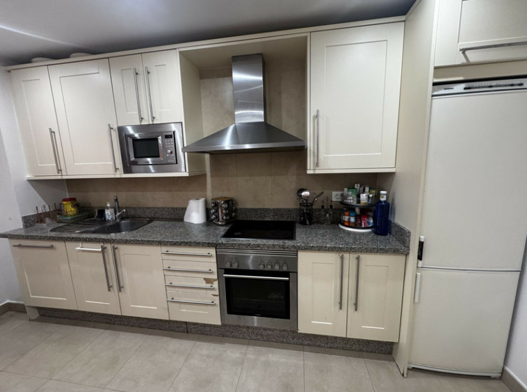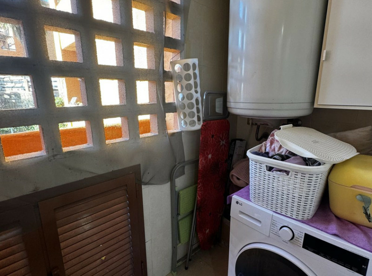 Hall de entrada , cocina totalmente equipada con lavadero independiente , salón comedor con salida a la terraza cubierta o segundo salón , terraza con vistas a la piscina y al jardin privado . Dos dormitorios , con dos baños totalmente reformados , el principal en suite . Jardin de 20 m2 de uso privativo y mantenimiento por parte de la comunidad.