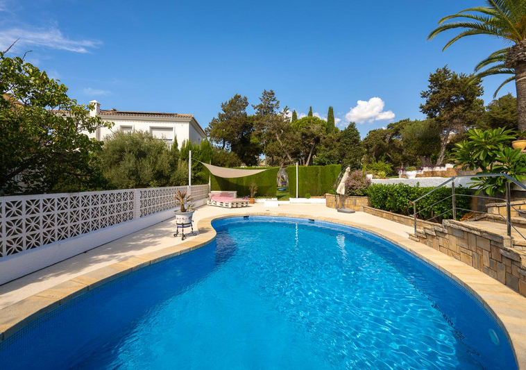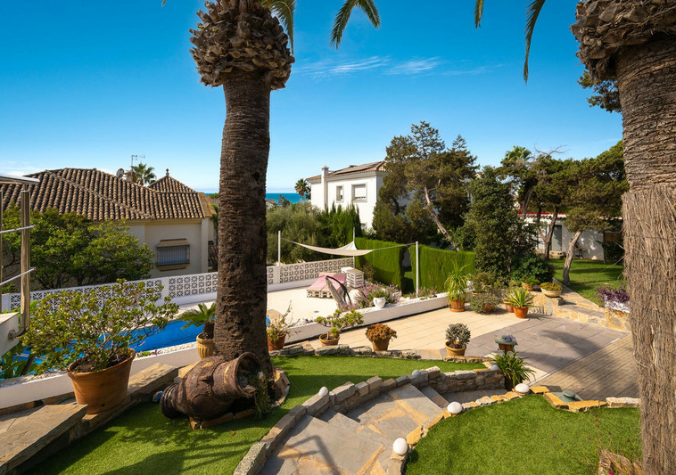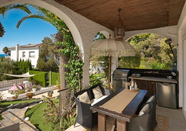 Oportunidad ÚNICA de adquirir una encantadora villa en una PARCELA DOBLE (1.676 m²) en la muy codiciada zona de Marbesa, a pocos pasos de la playa y del restaurante Simbad. ¡Disfrute de impresionantes VISTAS AL MAR desde la PLANTA BAJA!