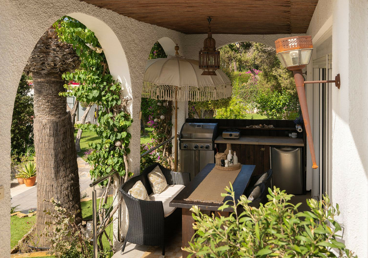 En el exterior, relájese en los hermosos jardines maduros, diseñados para el estilo de vida mediterráneo.