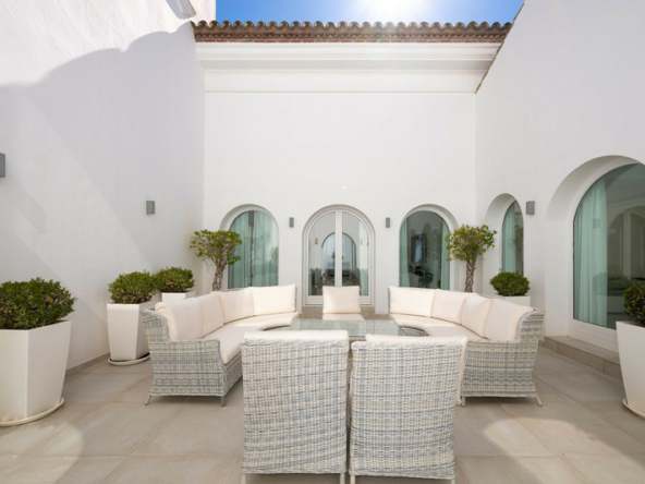 Al entrar en la Villa, la planta baja se abre a una amplia sala de estar con chimenea, un comedor, una oficina, un aseo para invitados y una cocina totalmente equipada. La zona inferior de la villa ofrece un baño hammam, sauna, zona de lavandería, aseo de invitados y 2 apartamentos independientes para invitados o para el personal. La planta superior tiene 5 dormitorios en suite con acceso directo a amplias terrazas con fantásticas vistas al mar y a la montaña. Características adicionales: villa con control domótico, piscina climatizada, sistema de riego automático, televisión por satélite, mucho espacio de almacenaje y alumbramiento del jardín.