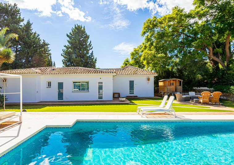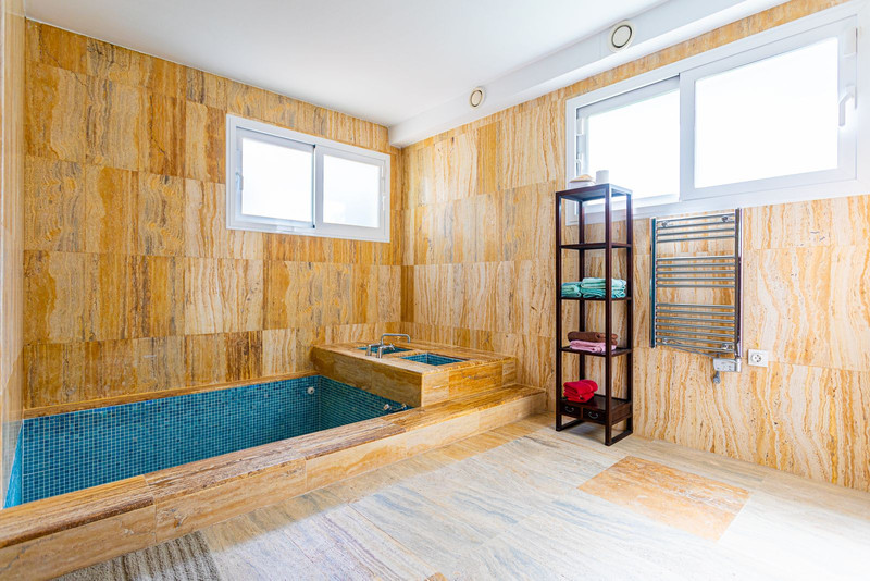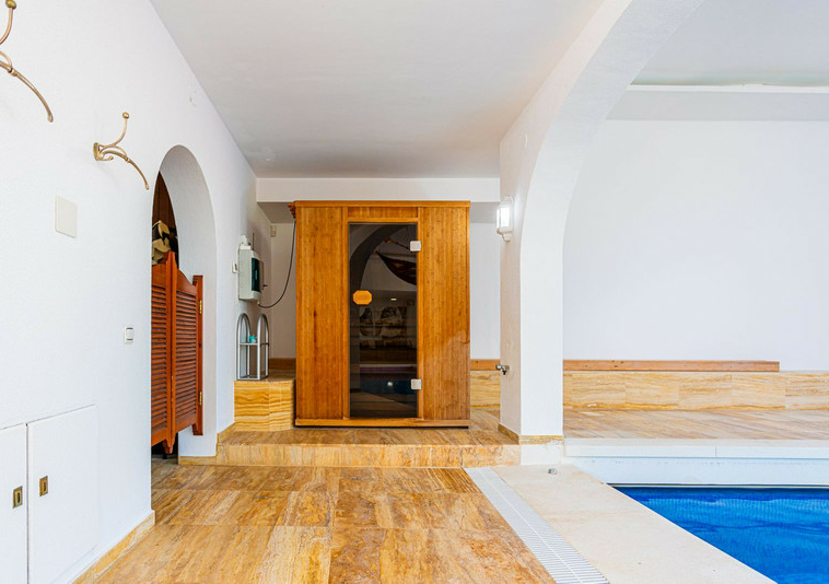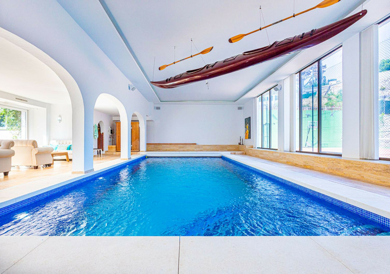 – una casa principal de una sola planta ( aprox 650 m² ) con 4 dormitorios ensuite, aseo de invitados, cocina, lavandería y piscina cubierta ( salada y climatizada ).