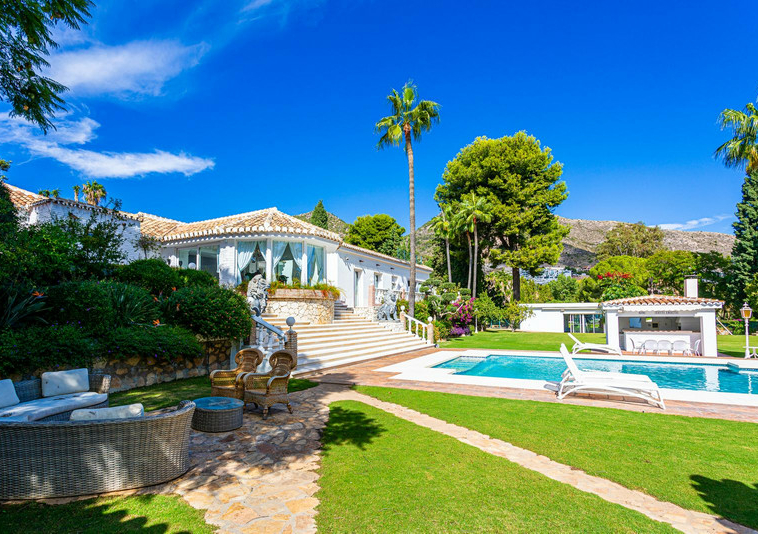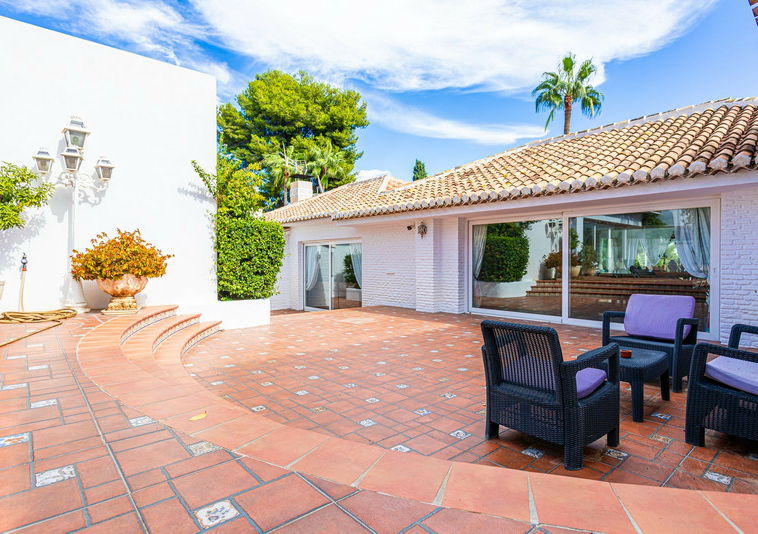Villa de un nivel del mundialmente famoso arquitecto Frank Lloyd Wright . Ideal como vivienda familiar para ella, él y los niños. La villa ofrece una increíble calidad de vida, plus una gama de ocio, aficiones y deportes, todo bajo un mismo techo. Excelente ubicación en una tranquila zona residencial en una parcela de 4500 m² en Rancho Domingo, Benalmádena.