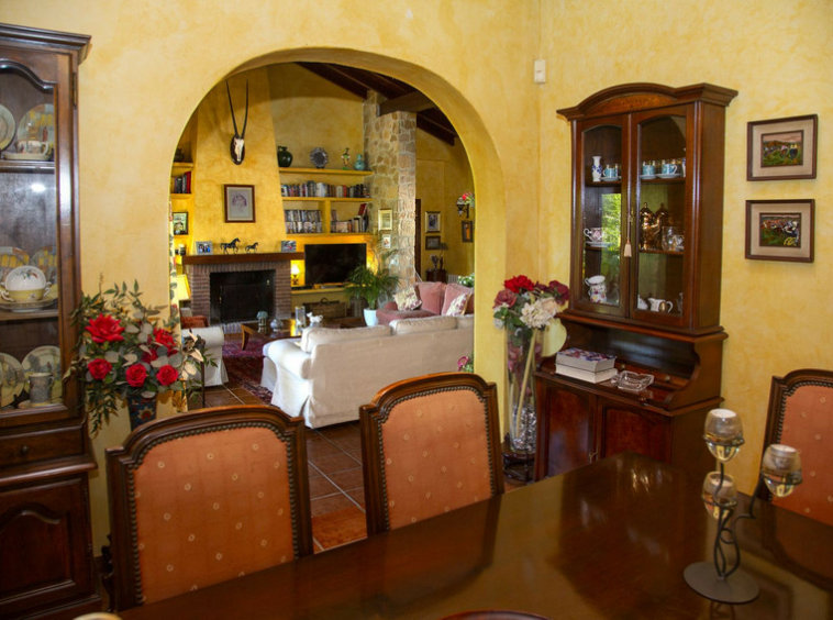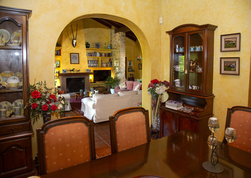 Villa de 6 dormitorios con 4 baños y aseo. La propiedad consta de 575 m2 construidos, además de encantadores espacios al exterior, como porches, terrazas, patios que sumán un total de 144 metros cuadrados, y jardines a lo largo de toda la finca para disfrutar de diferentes sensaciones, entornos y vistas. La propiedad se encuentra situada sobre una parcela de 10.000 m2, donde existen, aparte de la vivienda, amplios espacios para disfrutar de distintas actividades : la zona de la piscina de 12 metros de largo, rodeada de una gran pradera de césped tipo bermuda , para nadar , tomar el sol y relajarse o bien practicar un poco de deporte en la pista de tenis de alta calidad con iluminación nocturna . Un edificio de 85 m2 independiente de la casa, antiguamente dedicado a establos , está en la actualidad transformado en oficina y taller equipado con toda la maquinaria y herramientas necesarias para el mantenimiento de la finca. Este edificio , si se desea, podría fácilmente convertirse en casa de invitados o empleados .