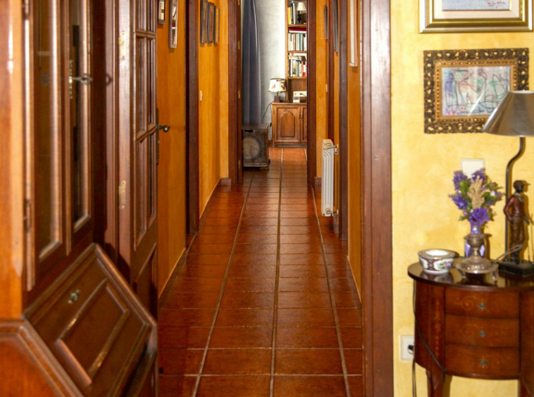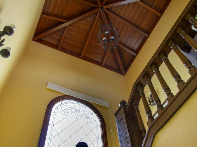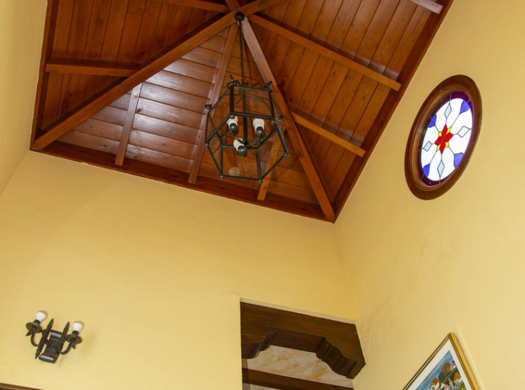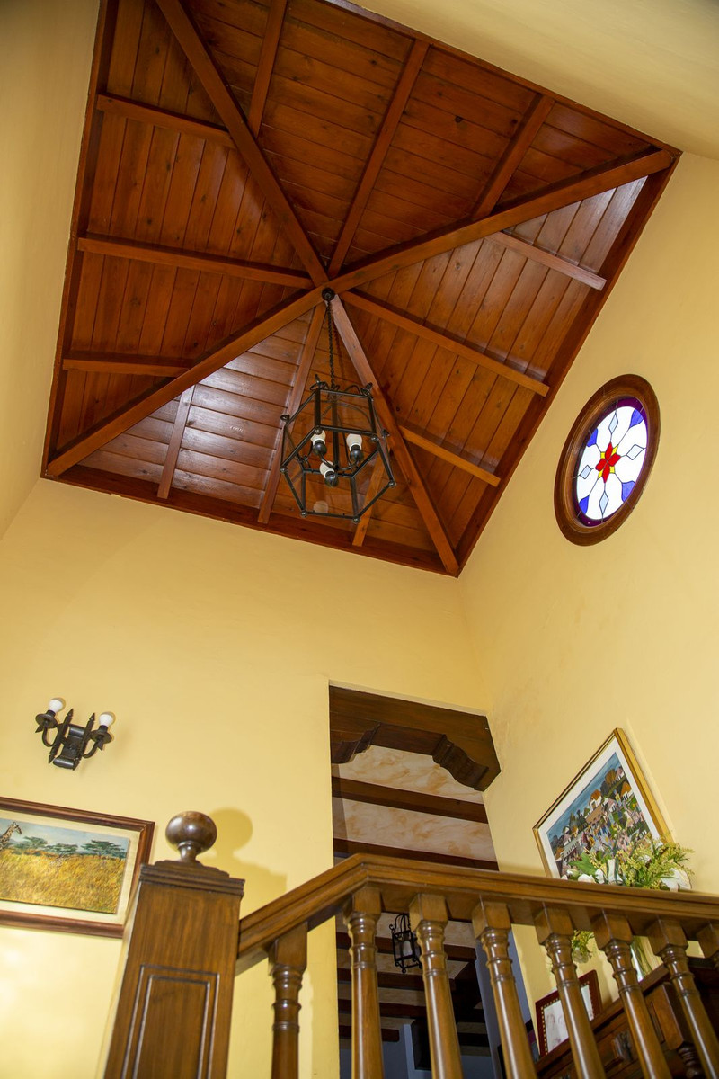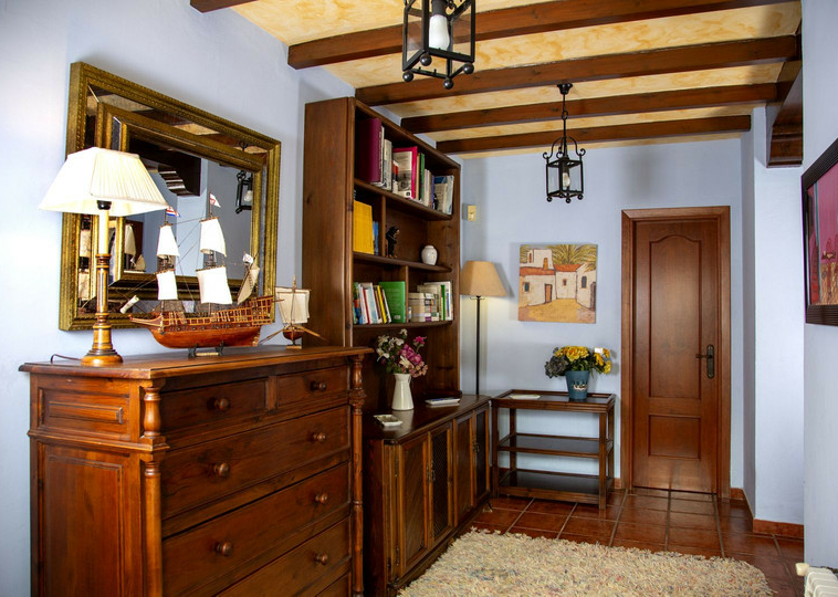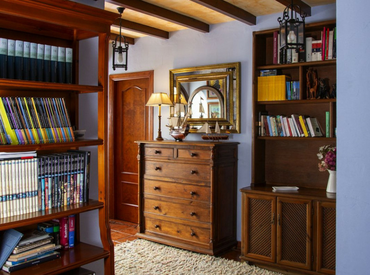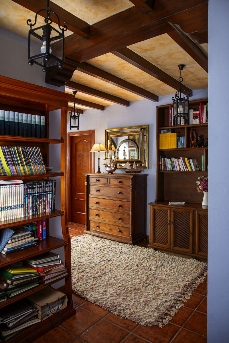 En la planta superior, subiendo las escaleras, con un techo espectacular de artesonado de madera en forma de torreón, se accede a un amplio distribuidor que comunica con 2 dormitorios con salida a terraza , un baño y una sala de oficina/biblioteca de gran tamaño a la que se puede dar diferentes usos en función de las necesidades.