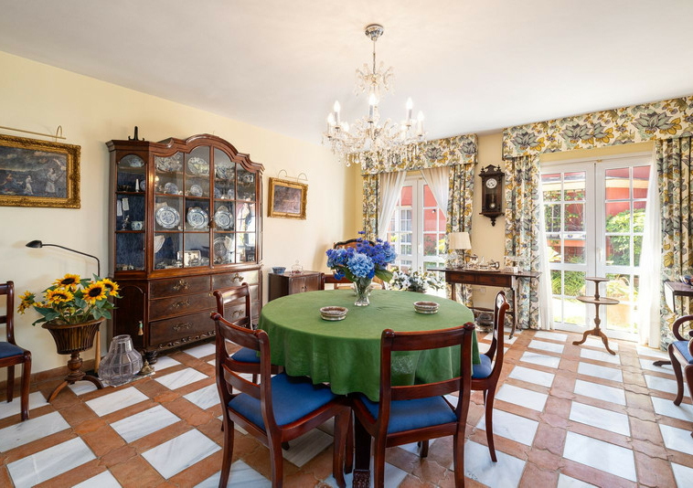La vivienda, de 888 m² construidos, se distribuye en dos plantas (principal y sótano semienterrado), con estancias amplias y luminosas, acabados de lujo y diseño clásico.
