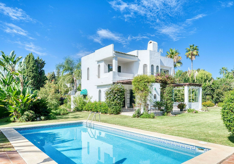 Villa ubicada en la prestigiosa zona de Nueva Andalucía, Marbella. Esta propiedad ofrece una posición privilegiada en primera línea del campo de golf Los Naranjos.