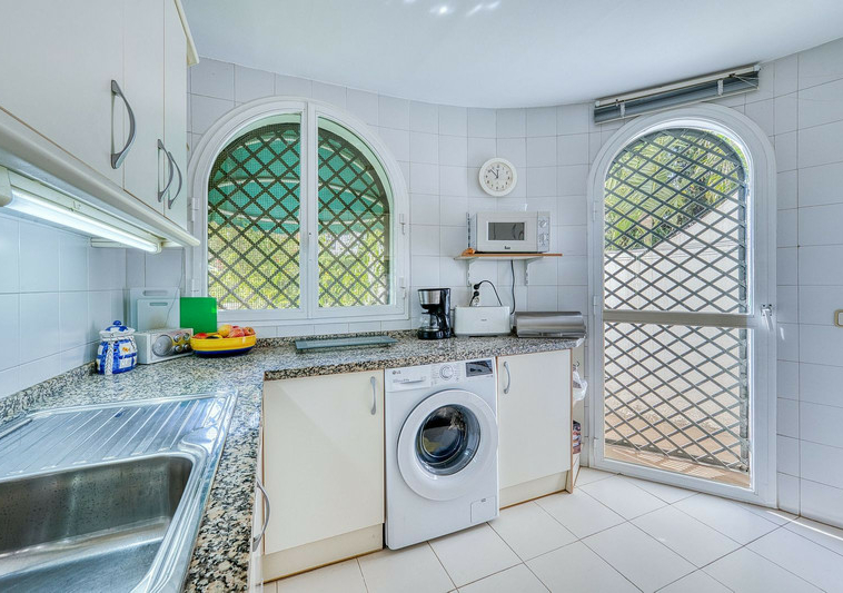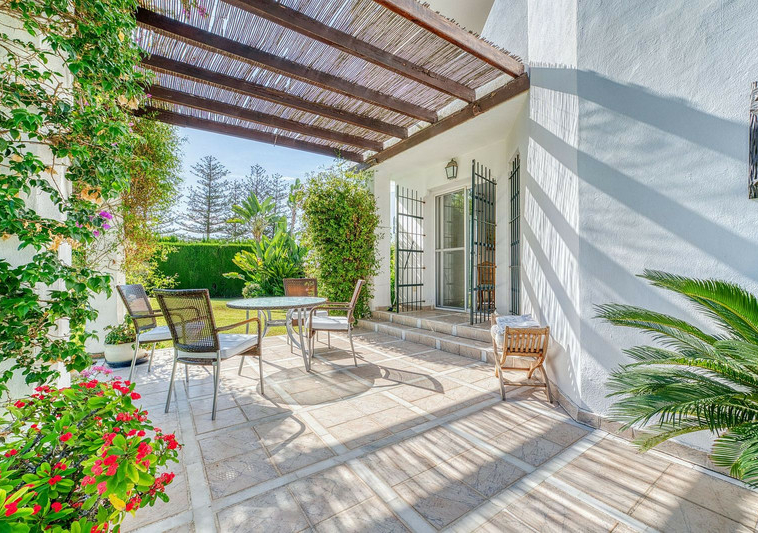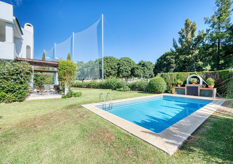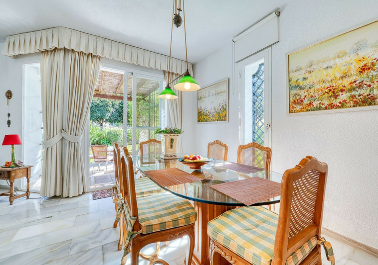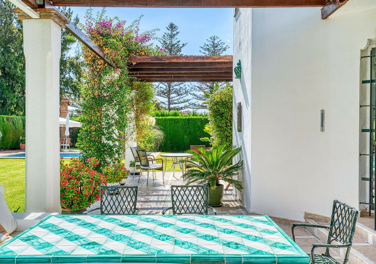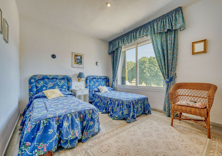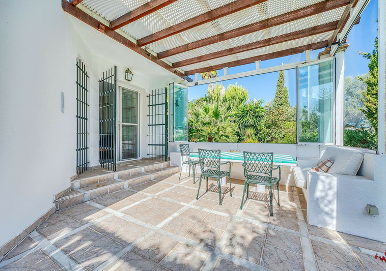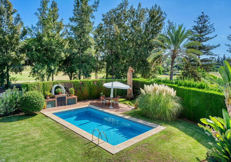 Ubicada en una tranquila calle sin salida y frente al campo de golf Los Naranjos. La parcela está diseñada de tal manera que la fachada hacia el golf es mucho más ancha que la entrada, lo que te brinda más privacidad y vistas al campo de golf. En la planta baja se encuentra el salón-comedor, la cocina y un baño. En la planta superior están los cuatro dormitorios con dos baños y una terraza. Junto a la piscina hay una encantadora zona de barbacoa para grandes reuniones al aire libre. Calefacción central. Garaje.