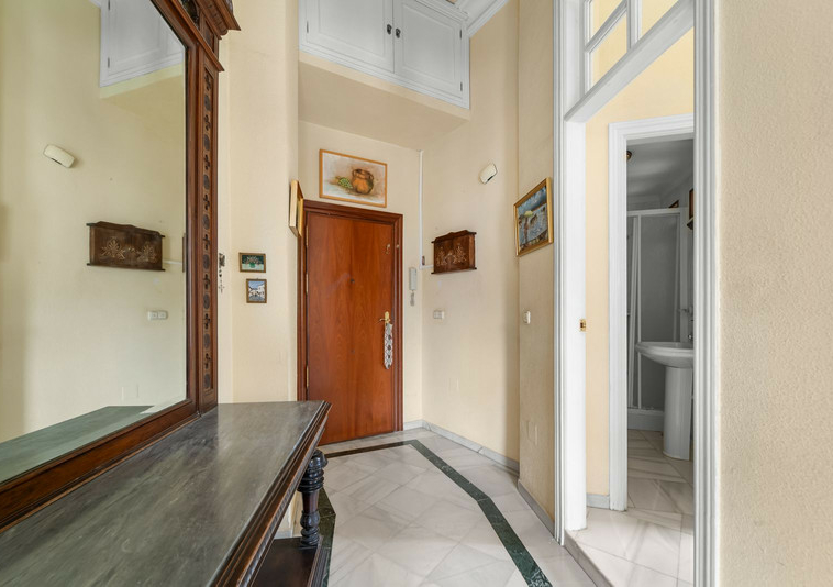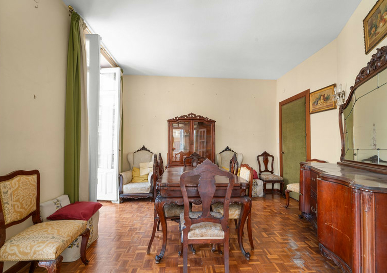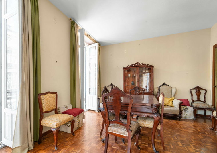 El apartamento conserva el carácter señorial propio de los edificios históricos del centro, con techos de más de tres metros de altura que aportan amplitud, elegancia y una sensación única de espacio. La abundante entrada de luz natural, combinada con la orientación sur, crea estancias abiertas y muy agradables durante todo el día.