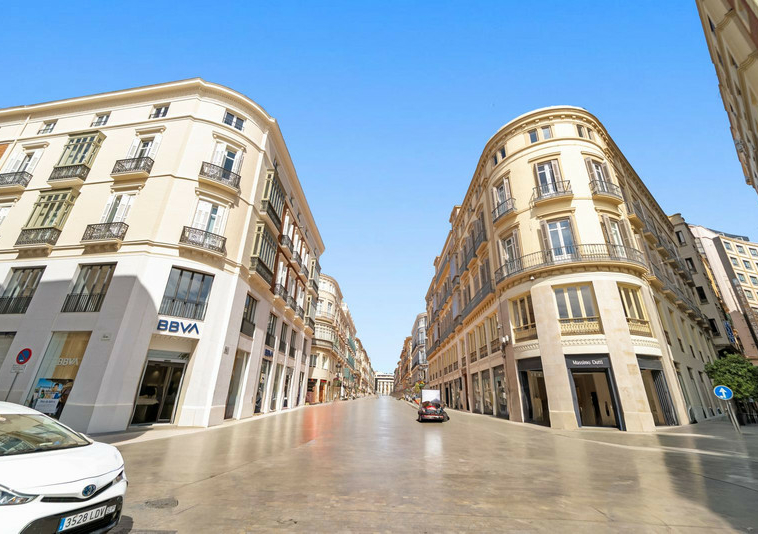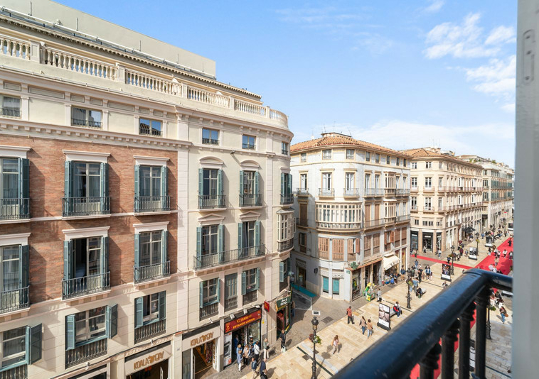 La vivienda, en esquina, destaca por su impresionante luminosidad, gracias a sus siete balcones rodeando la propiedad, que ofrecen vistas privilegiadas a la elegante calle Marqués de Larios y una mirada lateral a la majestuosa Catedral de Málaga, uno de los monumentos más icónicos de la ciudad.