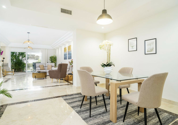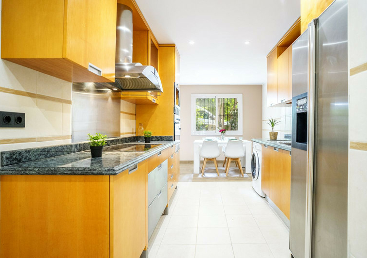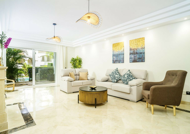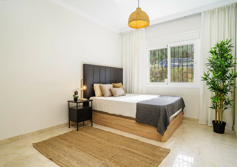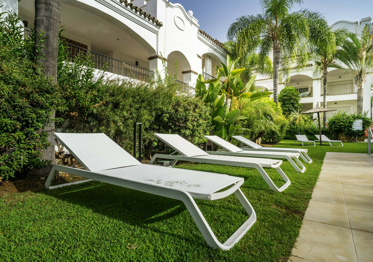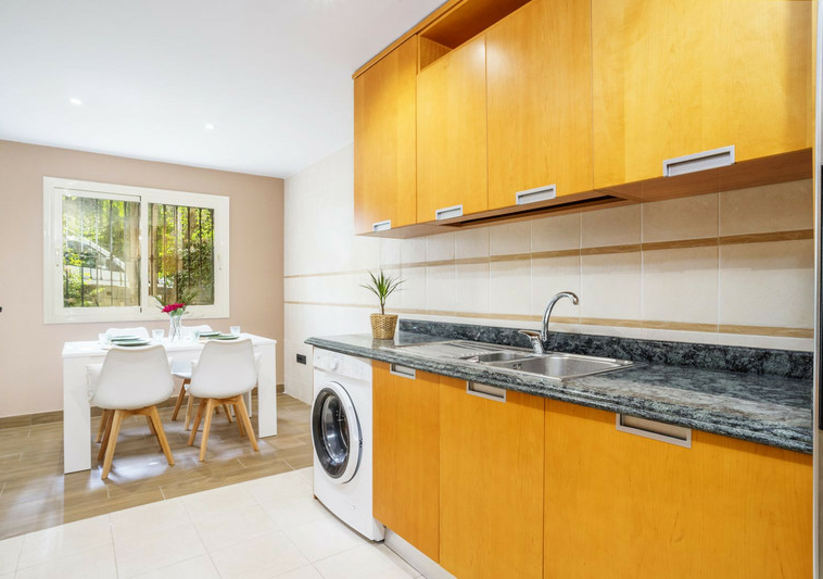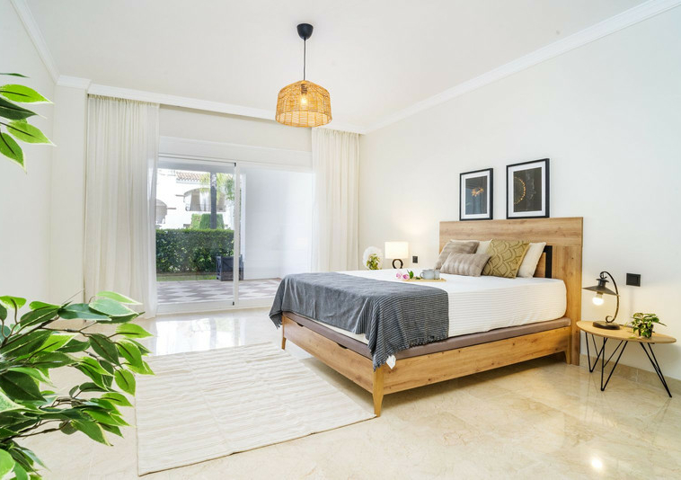 En esta vivienda en planta jardín, de casi 200 metros, con tres dormitorios y tres baños en suite, la vida fluye con amplitud y comodidad. Desde la terraza, el jardín privado conecta directamente con la piscina comunitaria, creando una continuidad perfecta entre interior y exterior.