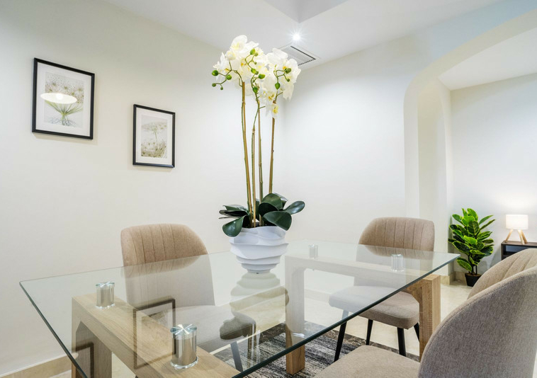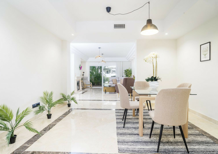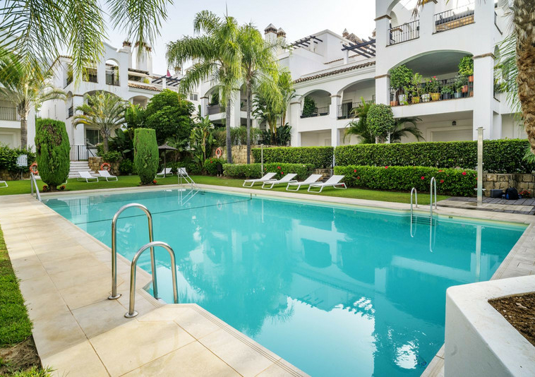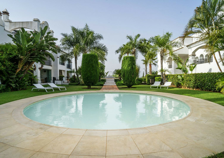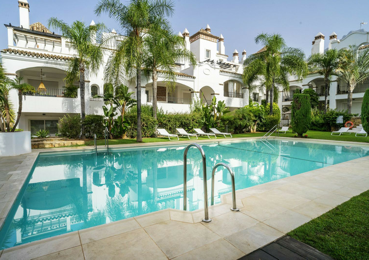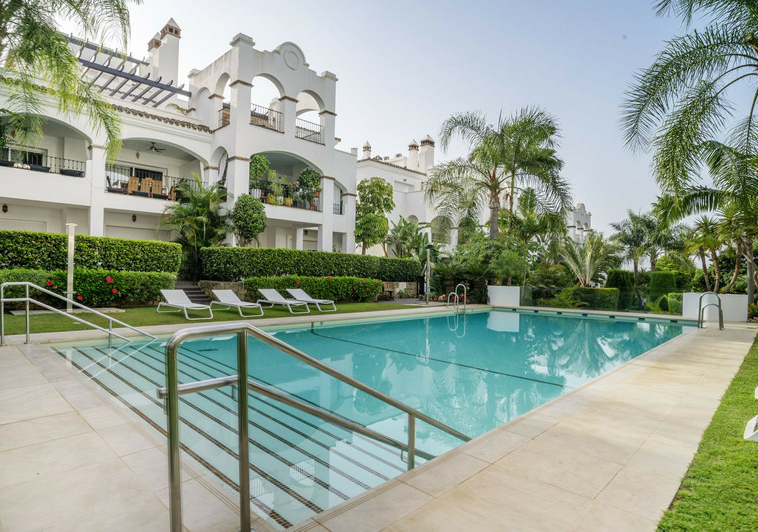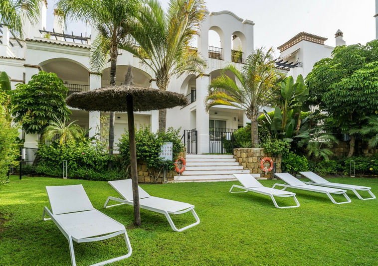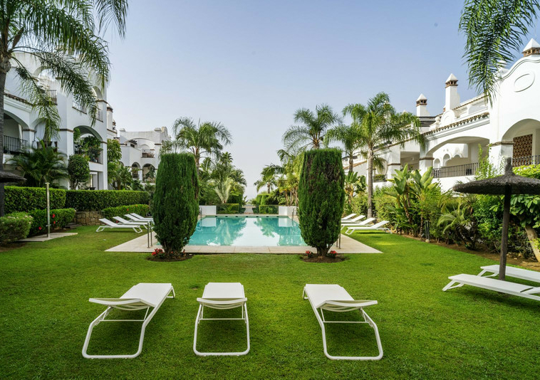 En esta vivienda en planta jardín, de casi 200 metros, con tres dormitorios y tres baños en suite, la vida fluye con amplitud y comodidad. Desde la terraza, el jardín privado conecta directamente con la piscina comunitaria, creando una continuidad perfecta entre interior y exterior.
