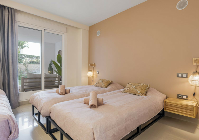 Ubicado en la codiciada “New Golden Mile”, se encuentra en una ubicación privilegiada: Estepona está a solo 10 minutos y el animado Puerto Banús también se puede alcanzar en 10 minutos en coche. Así, combina la tranquilidad de un oasis verde con la cercanía de zonas llenas de vida. El apartamento también dispone de licencia de alquiler.